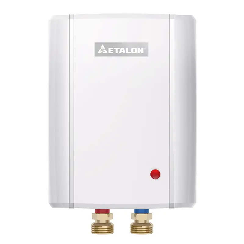 Водонагреватель ETALON (Эталон) 6000 проточный, выполнен в современном эргономичном дизайне, малогабаритен. Прекрасно обеспечит горячей водой для хозяйственно-бытовых целей. Нагревательный элемент спирального типа изготовлен из нержавеющей стали, что гарантирует его долговечность и защиту от коррозии. Устройство надежно и безопасно (прибор имеет заземление, класс защиты от поражения электрическим током – 1).
