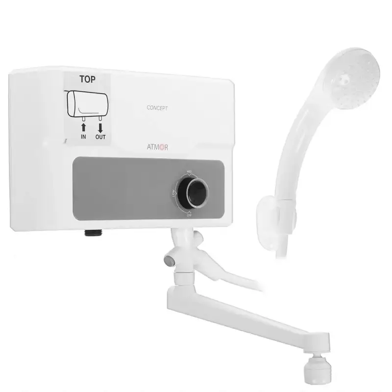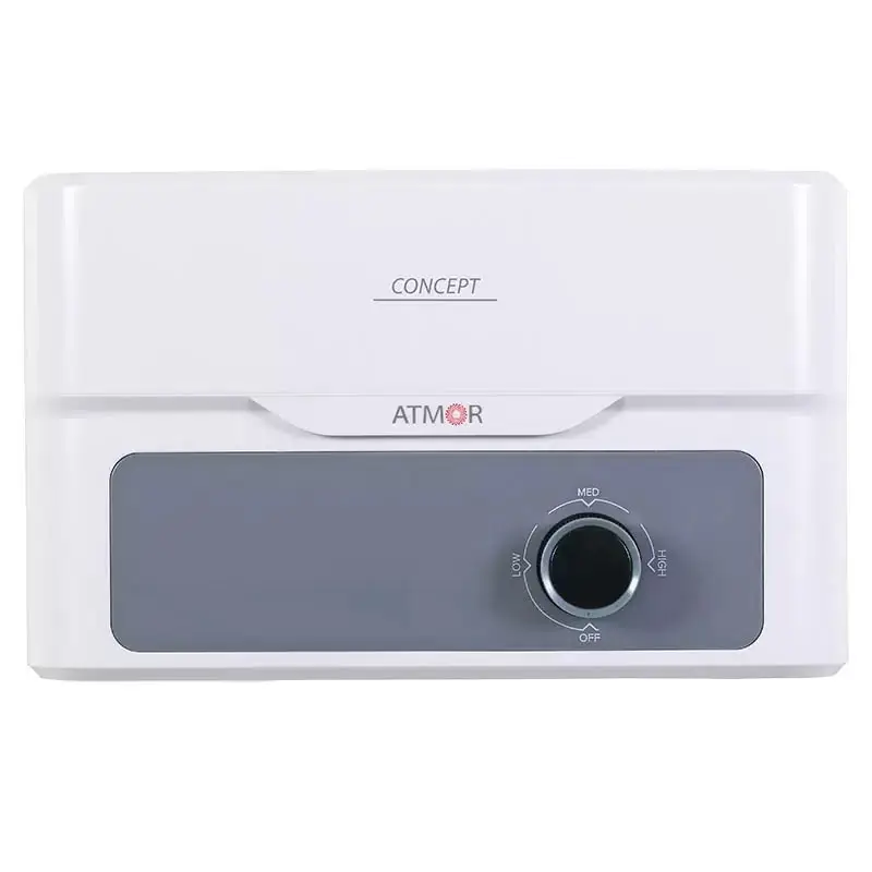 Электрический проточный водонагревател Atmor (Атмор) CONCEPT имеет компактный и эргономичный дизайн, что позволяет установить их в любом месте помещения. Корпус и комплектующие оборудования изготовлены из безопасных и надежных материалов. Механический регулятор позволяет быстро и точно настроить уровень нагрева воды.