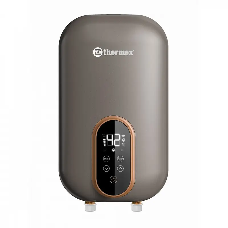 Thermex (Термекс) Chief 8500 – стильный и современный водонагреватель проточного типа, выполненный в компактном корпусе. Модель оснащена высокотехнологичной функцией Smart Heat. Нагреватель и колба изготовлены из меди. Модель характеризуется стабильной работой и постоянной температурой воды на выходе. Водонагреватель оснащен системой электронного управления.