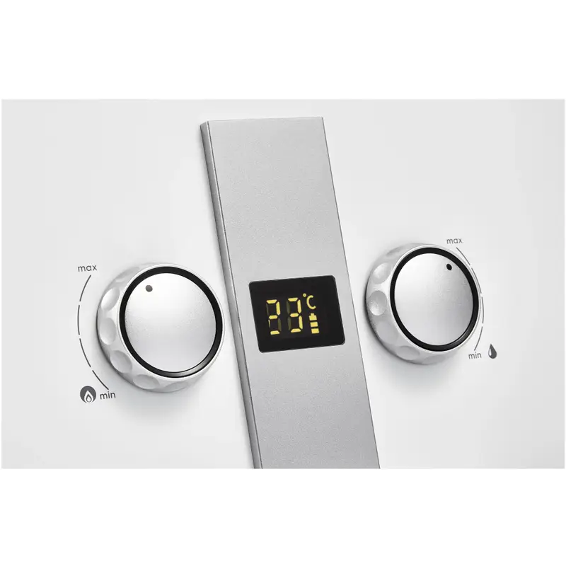 - LED-дисплей, на котором отображается температура нагрева воды и заряд батареи