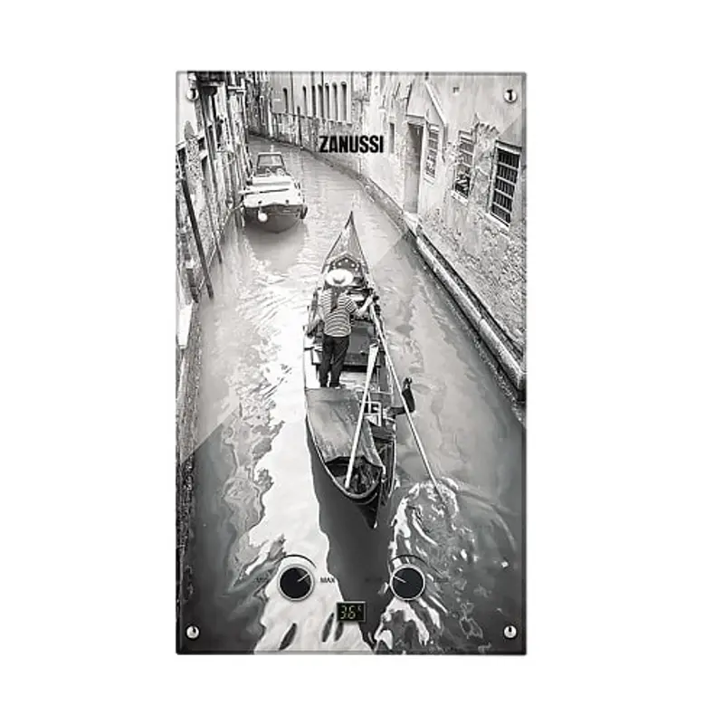 С проточной газовой колонкой модели GWH 10 Fonte Glass Venezia от итальянской компании Zanussi Вы сможете создать неповторимый интерьер в Вашей кухне или ванной комнате. На передней панели этого прибора нанесено изображение венецианской улицы, что позволяет сделать эту колонку самой по себе ярким акцентом в комнате и самостоятельным элементом декора.